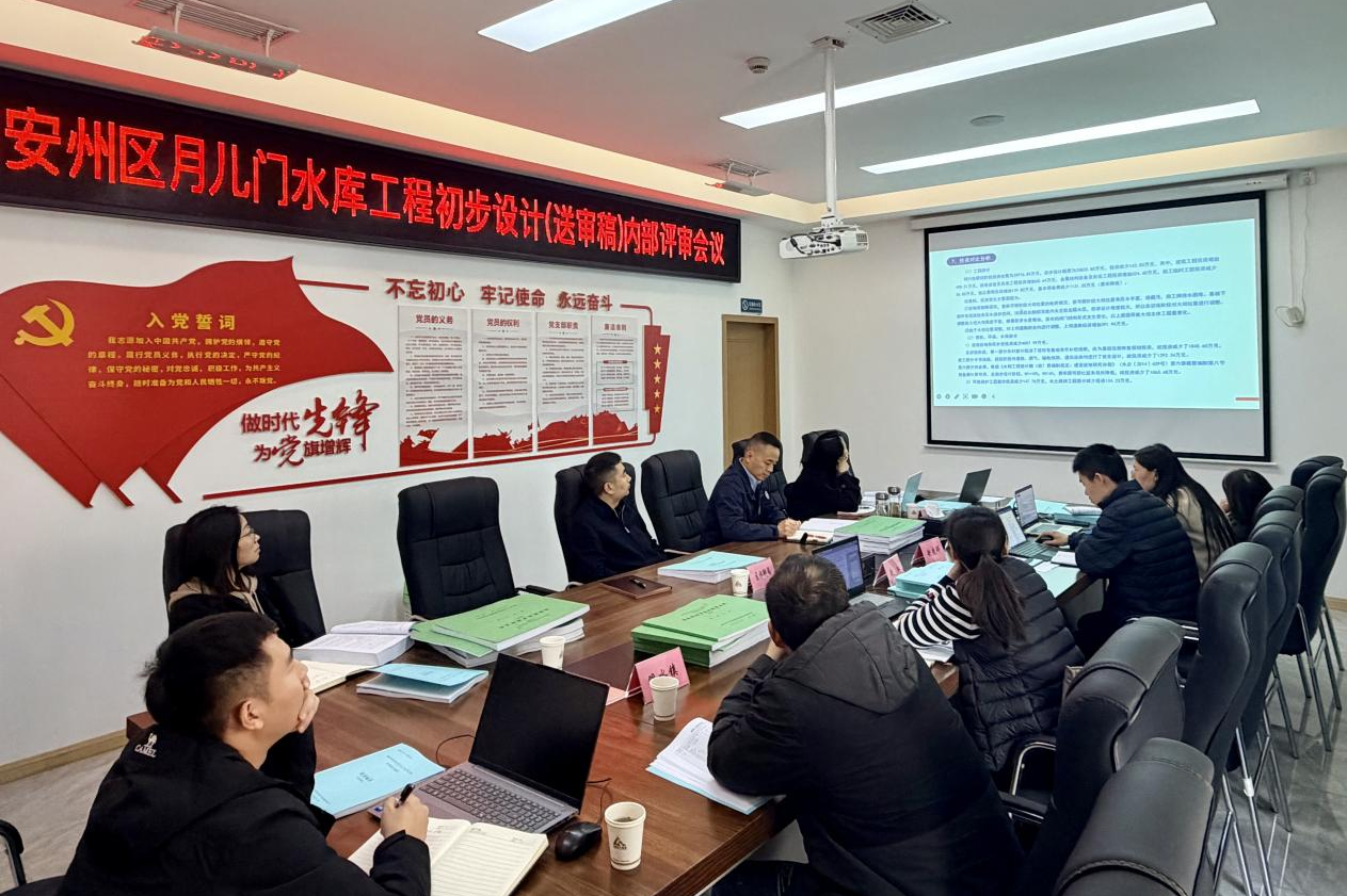 11月10日,集團召開綿陽市安州區(qū)月兒門水庫工程初步設(shè)計(送審稿)內(nèi)部評審會議。集團董事長袁波、總經(jīng)理楊婷婷,市水利規(guī)劃設(shè)計院、區(qū)水利局、雎水鎮(zhèn)政府相關(guān)代表及評審專家參加。(素材來源:項目安環(huán)中心 張瑞桃)